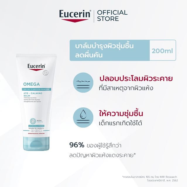 โอเมก้า บาล์ม บาล์มบำรุงผิวกาย สำหรับผิวแห้ง แดง คัน ยูเซอริน โอเมก้า บาล์ม เป็นบาล์มบำรุงผิวกายสำหรับผิวแห้ง แดง คัน สามารถใช้ทาเป็นประจำได้ทุกวัน และทาซ้ำได้ในระหว่างวัน ด้วยการออกแบบชนิดพิเศษ ให้เนื้อสัมผัสเบาบาง เกลี่ยง่าย ไม่เหนียวเหนอะหนะและไม่ทิ้งความมันตกค้างที่ผิว ช่วยเติมความชุ่มชื้นให้กับผิว สามารถให้ความชุ่มชื่นได้ทันที ฟื้นบำรุงทำให้ผิวเรียบเนียน พร้อมเสริมสร้างให้ชั้นปกป้องผิวแข็งแรง ด้วยมีส่วนของ