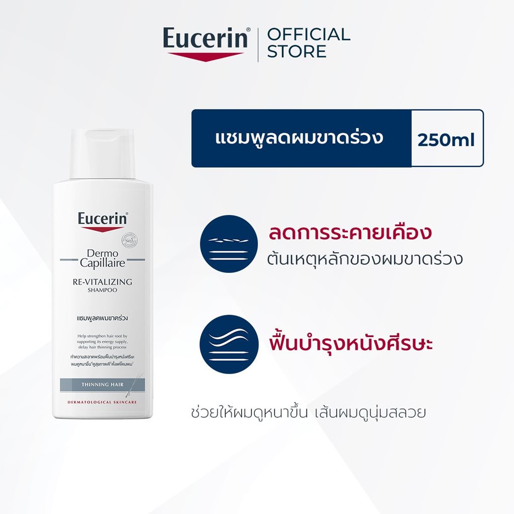 ยูเซอรินเดอร์โมคาพิลแลร์ ทินนื่ง แฮร์ แชมพูได้รับการวิจัยและพัฒนาขึ้นเพื่อลดปัญหาผมบางขาดร่วงตั้งแต่ต้นเหตุ ผสานการทำงานของ ลิโคชาลโคน เอ ช่วยฟื้นบำรุงหนังศีรษะที่ระคายจากสิ่งตกค้าง หนังศีรษะจึงดูสุขภาพดีขึ้น ไม่ระคายเคือง พร้อมทั้ง คาร์นีทีนและครีเอทีน ช่วยให้ผมดูหนาขึ้น ดูสุขภาพดีตั้งแต่โคนผม เส้นผมไม่เปราะขาดง่าย ชะลอผมขาดร่วงอย่างมีประสิทธิภาพ พร้อมให้เส้นผมนุ่มสลวย